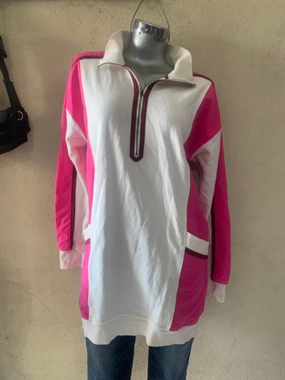 Ideal para esta temporada fresca para usarla como vestido y te IA lleva dos bolsas grandes frontales queda bien a talla L pero anexo medidas