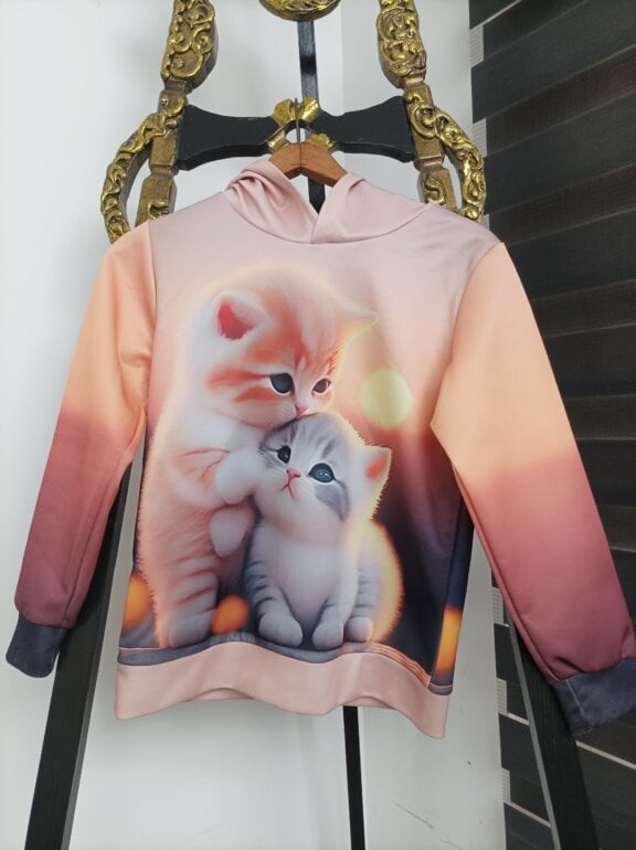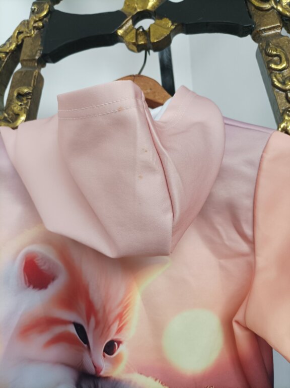 Linda sudadera con capucha tela ligera, con estampado de gatitos, poco uso, detalles mínimos que se se muestran en fotos. Talla 9/10.