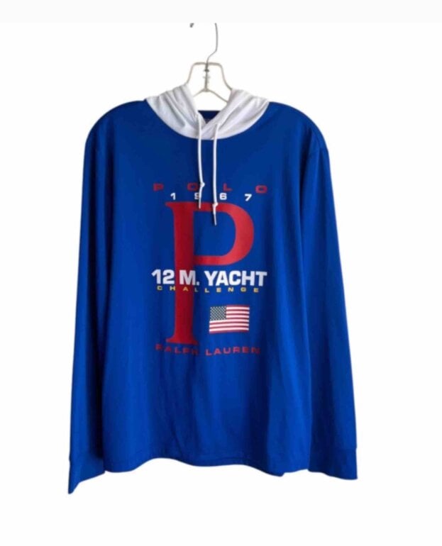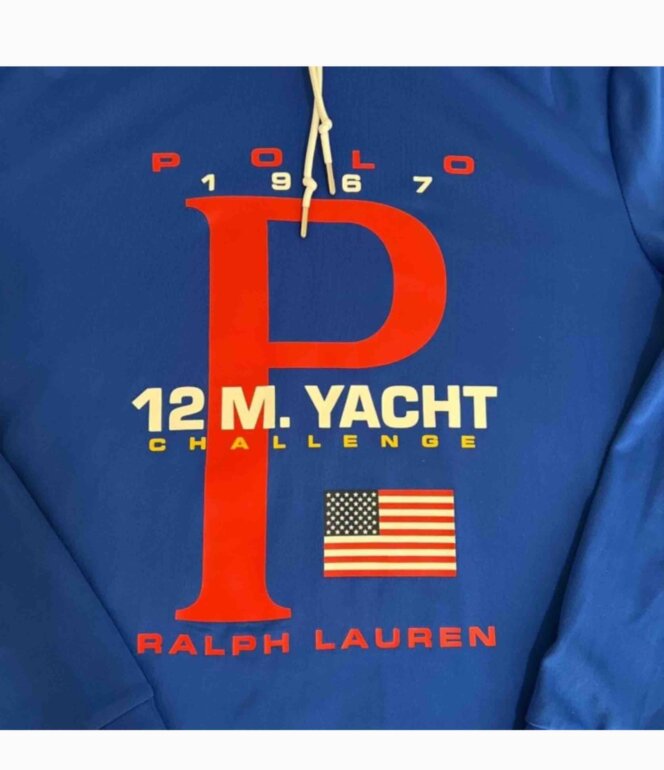 Polo Ralph Lauren . Sudadera ligera con capucha 12M Yatch Challenge . Talla M . Puesta un par de veces. Medidas aprox. Hombro 46. Pecho 55 cm . Largo frente desde hombro 64. Largo manga 60 cm . Solo una mini mancha tipo raya en la capucha al frente donde dobla se muestra última foto . Casi no se ve .