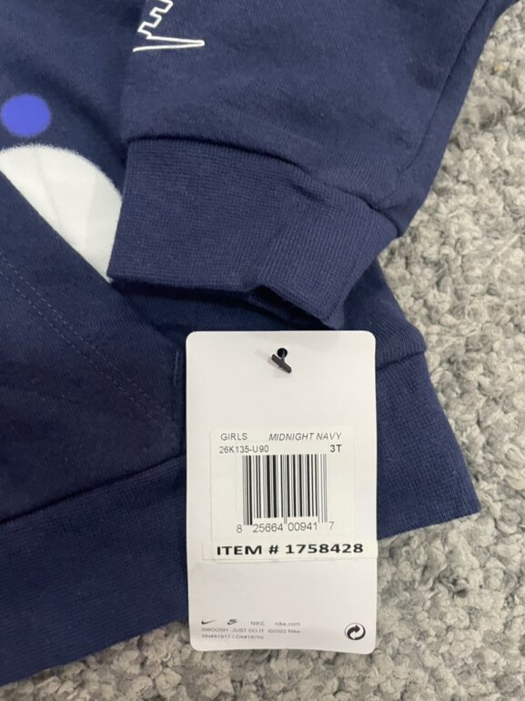 Sudadera de la marca Nike, original, color azul, disponible en talla 2 y 3 años