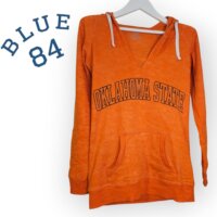Fantástica sudadera ligeramente afelpada, bolsas canguro, gorro y jareta color blanco. Estampada con la mascota del equipo Pistol Pete en la espalda, naranja jaspeado. Sin detalles.