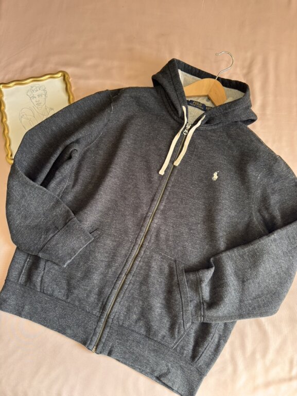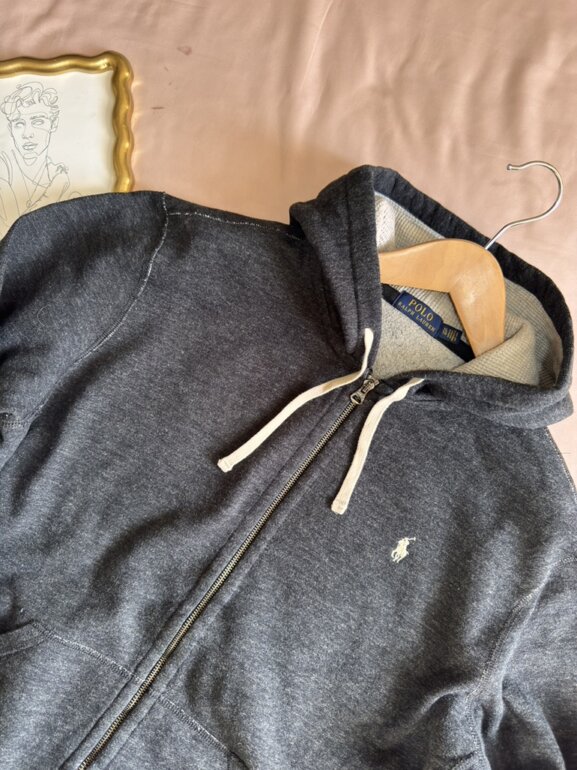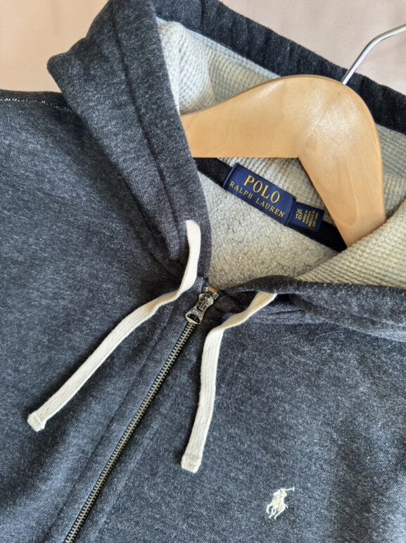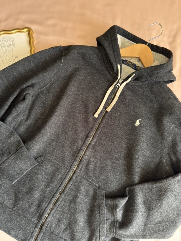 Sudadera Polo Ralph Lauren de increíble calidad, con cremallera completa, y gorro con cordón ajustable.