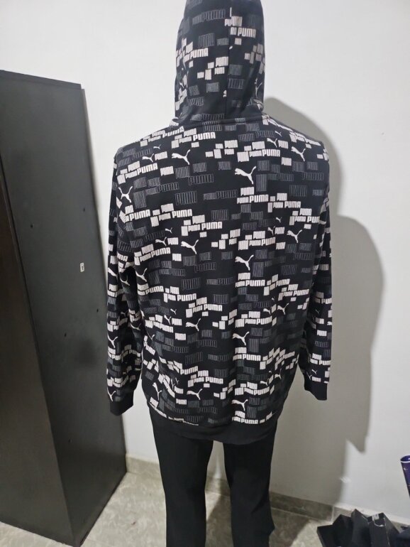 Sudadera marca Puma talla extra grande con diseño completo de logotipo Puma en buenas condiciones y con capucha