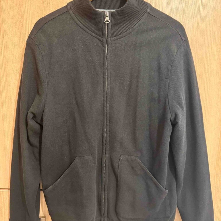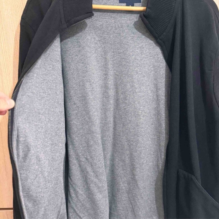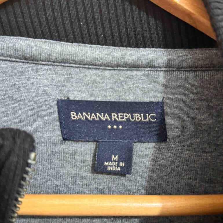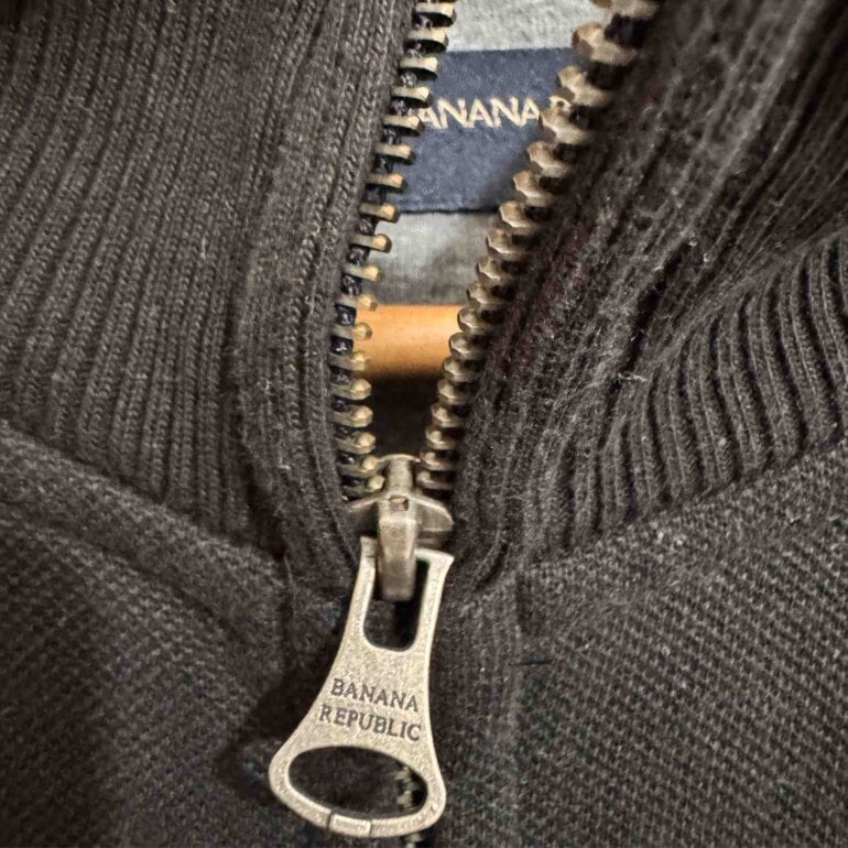 Si quieres algo de calidad llévate este suéter extraordinario de marca Banana, negro, de cierre y con fondo gris.