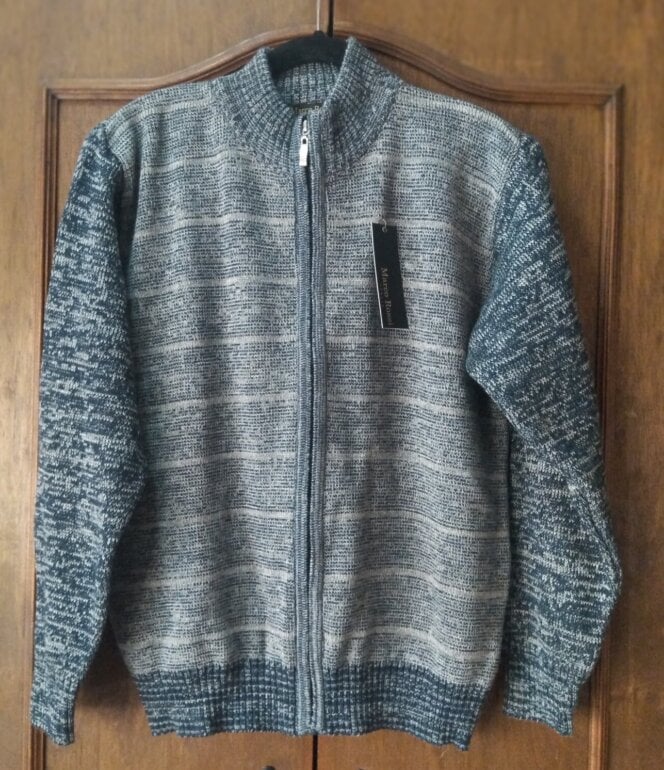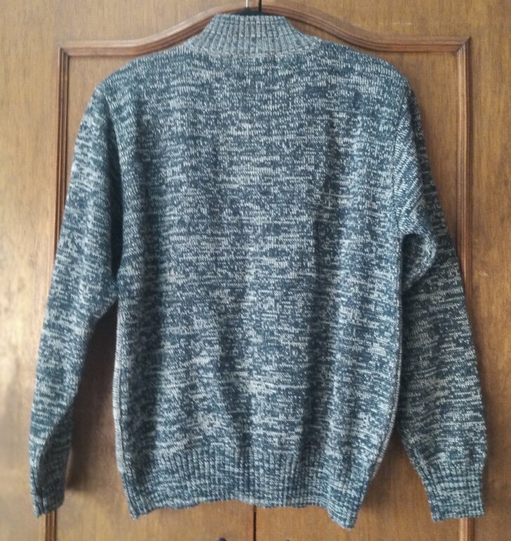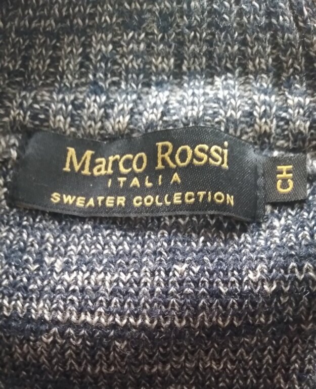 Bonito suéter de Caballero Marco Rossi, cuello redondo con cierre..talla S viene amplio... tejido colores gris con azul.