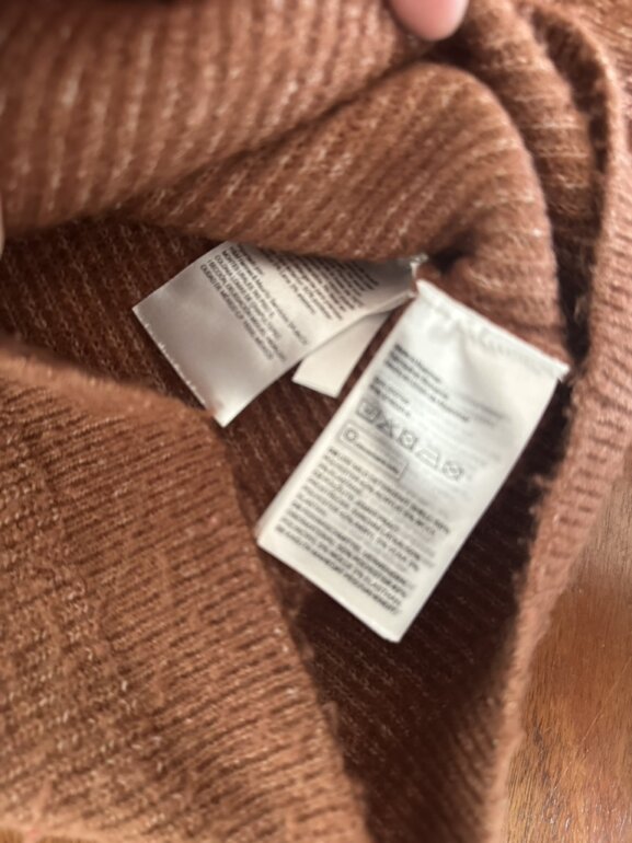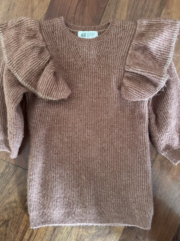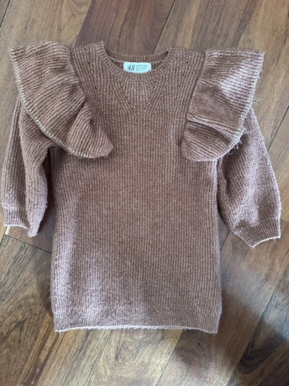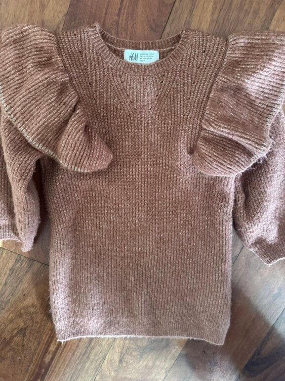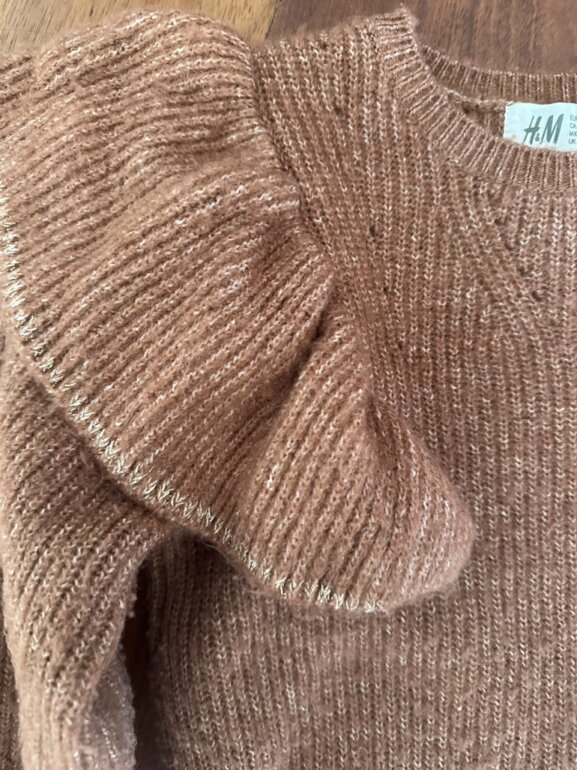Suéter marrón con bolados e hilo dorado