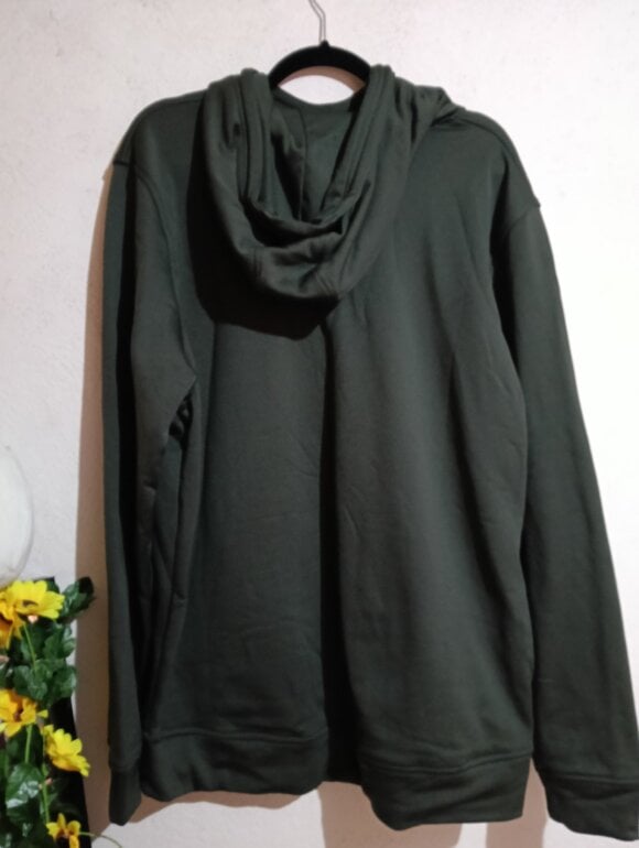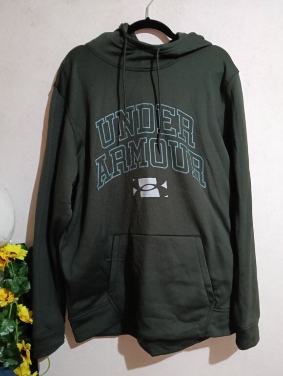 Estado: nuevo. Suéter gris marca under armour, no tiene Zipper, gorrito con bolsa enfrente. Talla extra grande de hombre (en mujer talla L ya quedaría grande over size).