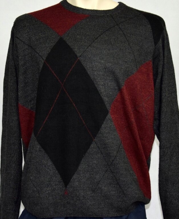 Suéter marca Dockers talla med color gris oxford con negro y rojo en excelente estado