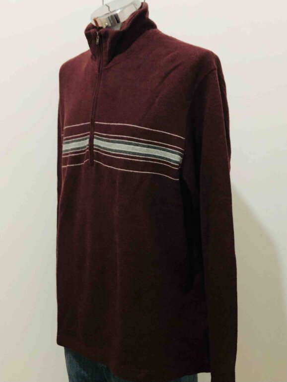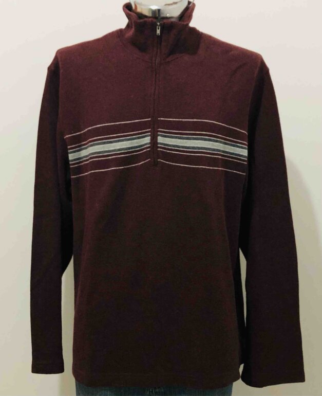 Suéter en tono vino. Cierre delantero. Cuello alto. Talla XXL. En perfecto estado