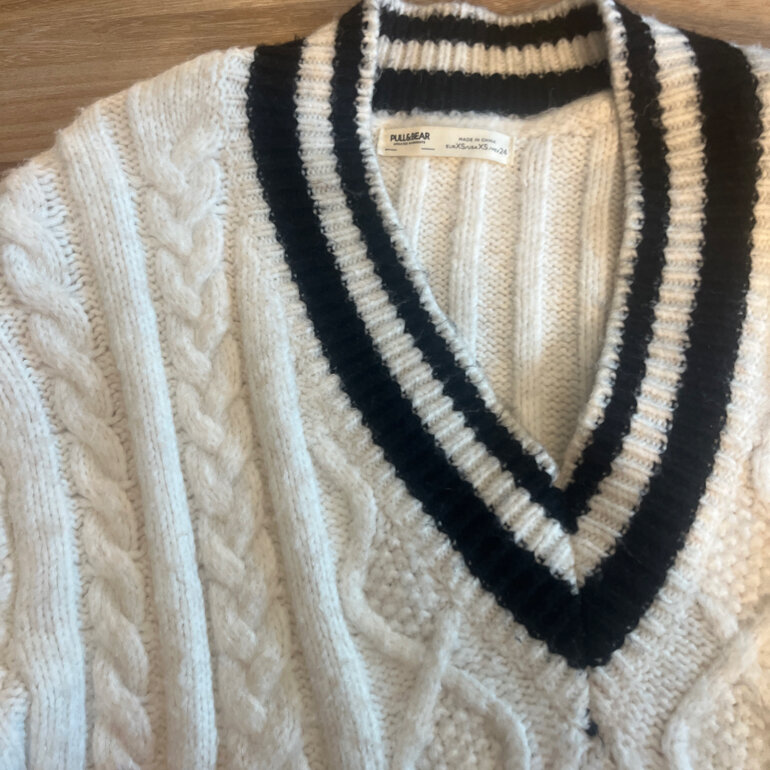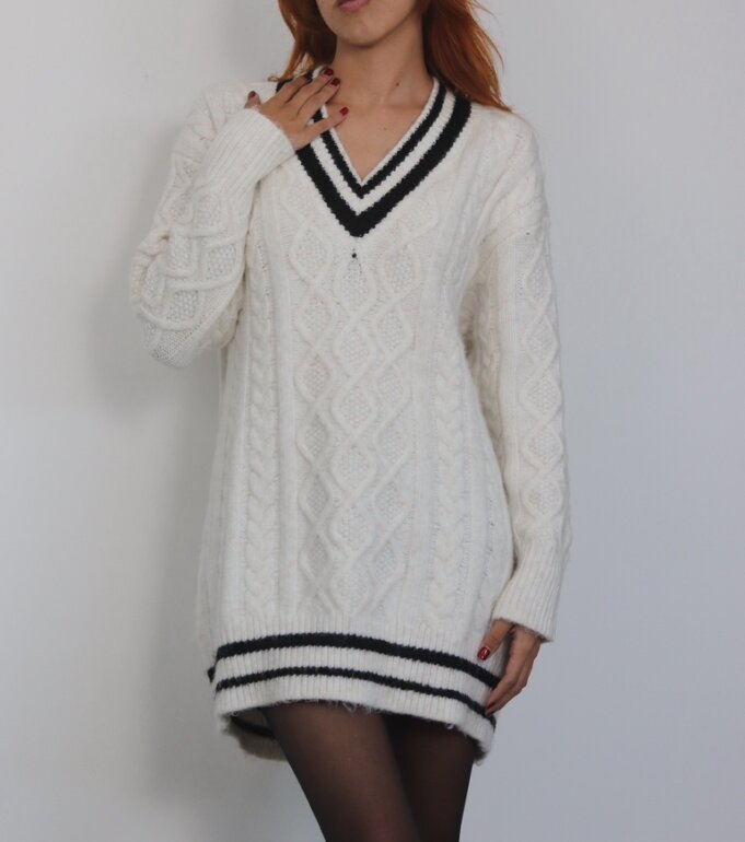 Sueter con detallea en negro cuello V y largo