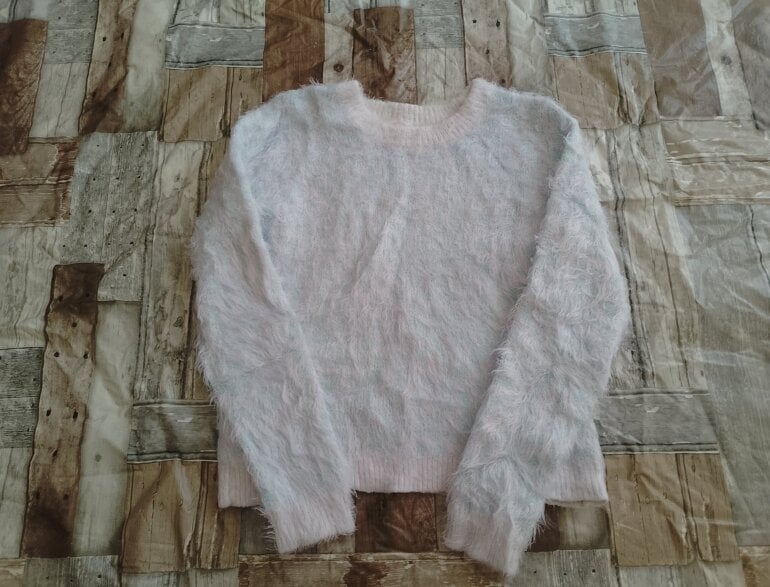 Suéter color azul con gris es de peluche es tela gruesa no tiene detalles