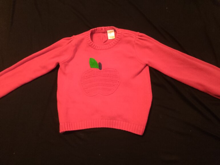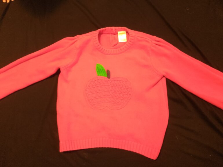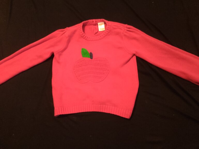 Suéter diseñó estampado con 🍎 manzana🍎 ROJA CROCHET , cien por ciento algodón, talla 5 , marca GYMBOREE entregó en 🍱📦 caja reciclada.