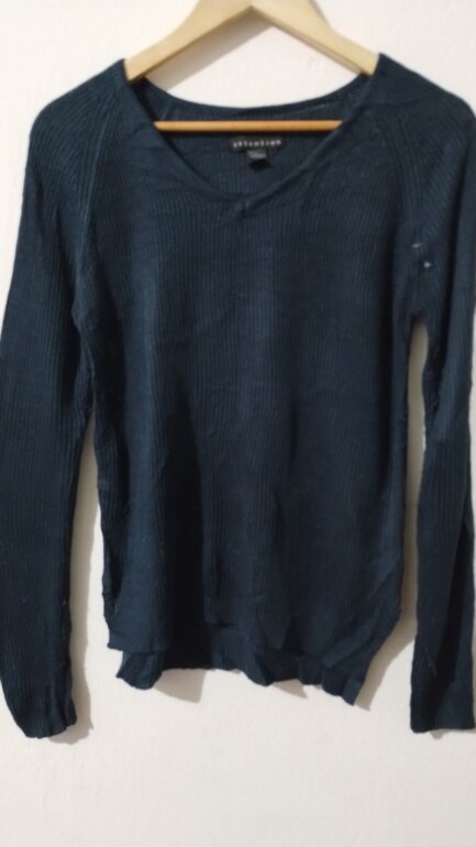 Suéter ligero azul marino talla S cuello en V tejido de punto calado en muy buenas condiciones