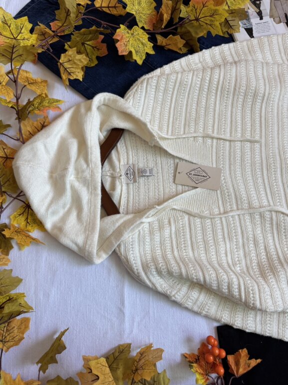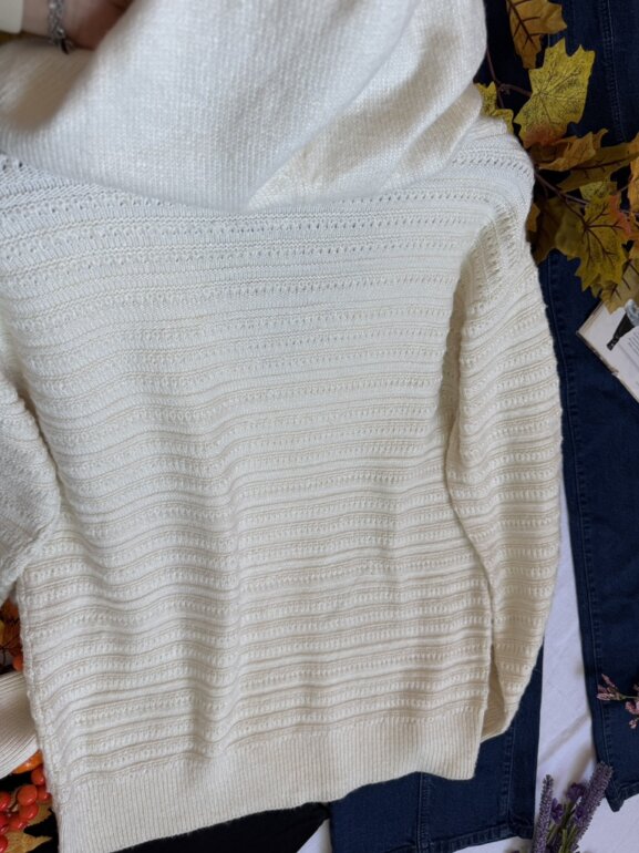 Suéter color ivory de punto , talla grande con gorro. Está bien bonito 🤩🤩