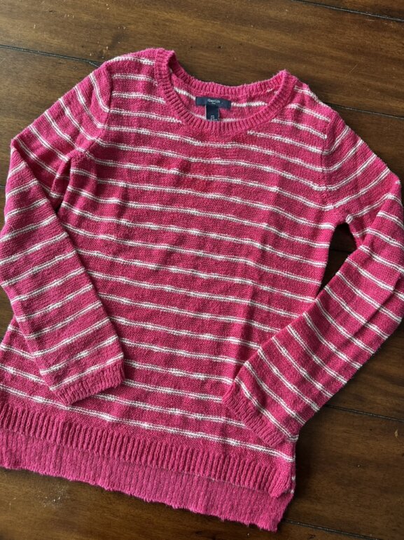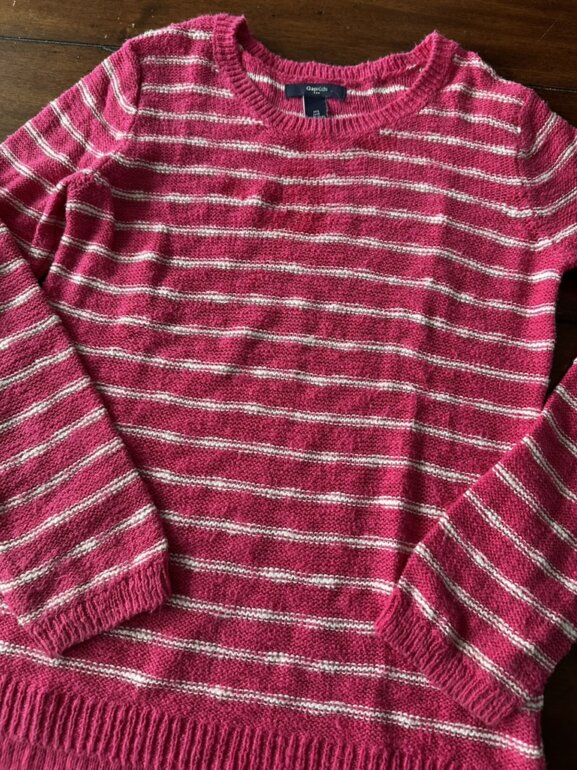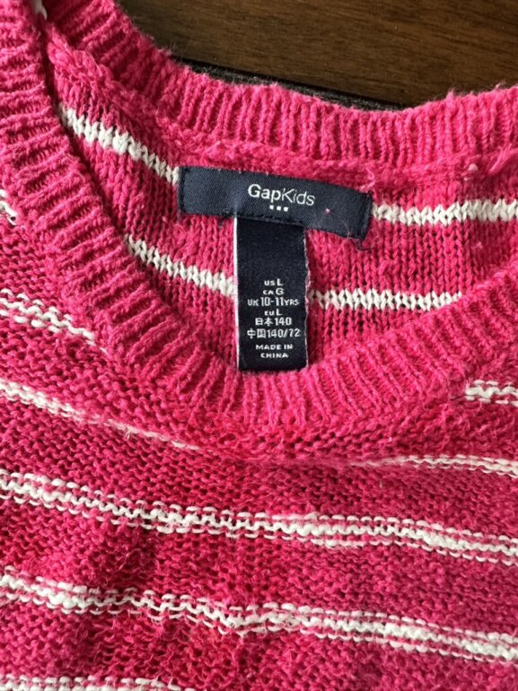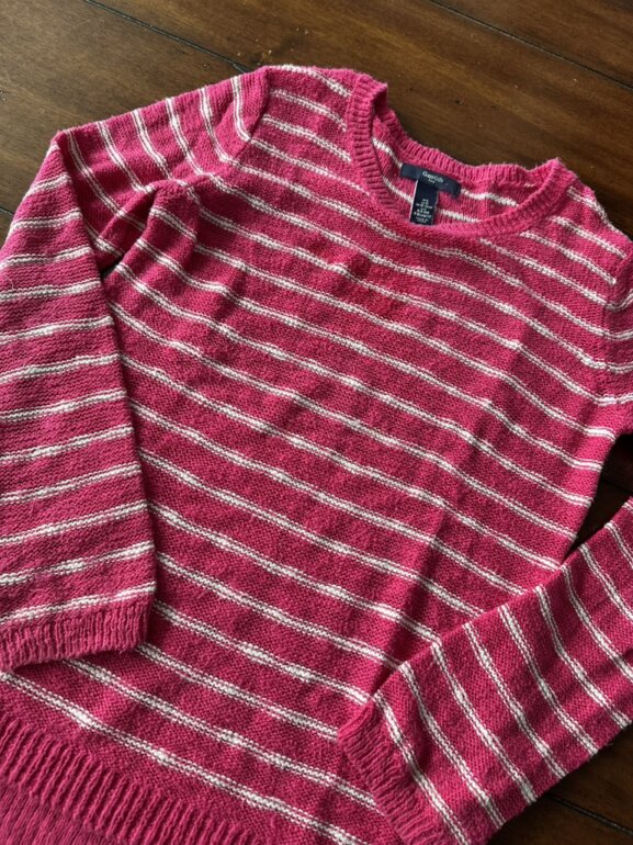 Suéter ligero de cuello redondo para niña, marca Gap mide del 58cm de largo y el ancho entre hombro es de 34 cm