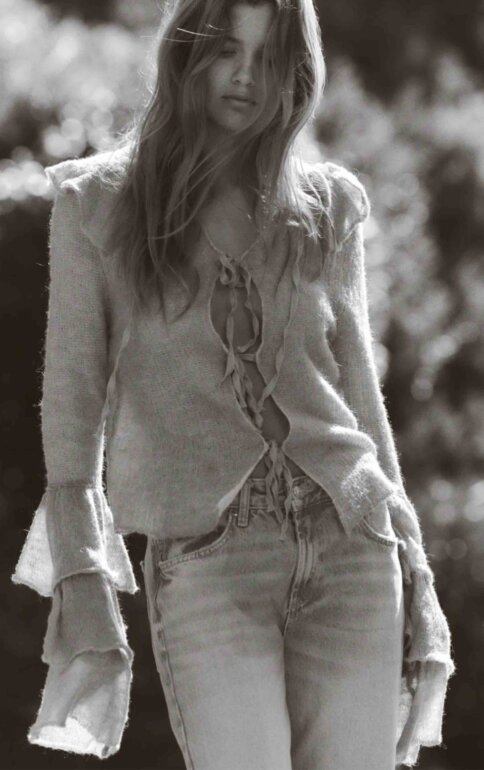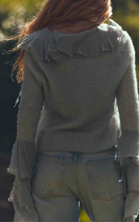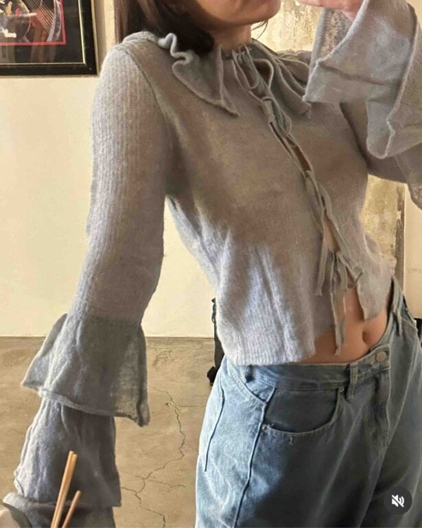 A ESTRENAR CON ETIQUETA color menta, HERMOSO, estilo romántico, con olanes en las mangas, con listones que hacen monos en la parte frontal, caliento y ligero. De alpaca con lana y fibras recicladas. Talla marcada L pero sin tema puede ser M.