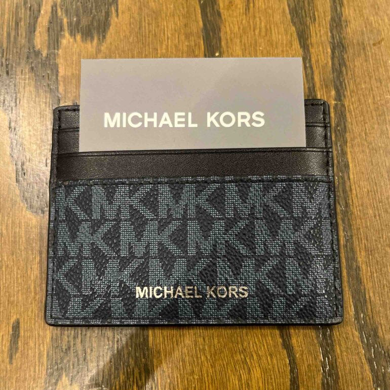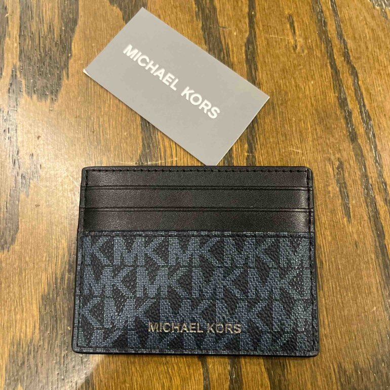 Tarjetero azul con negro Mk grabado con la marca para 8 tarjetas nuevo sin etiqueta sin detalles súper lindo !