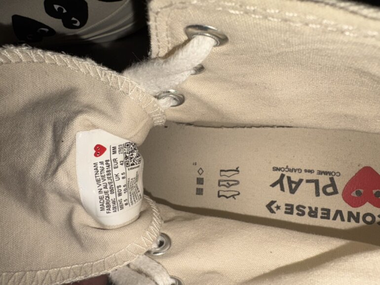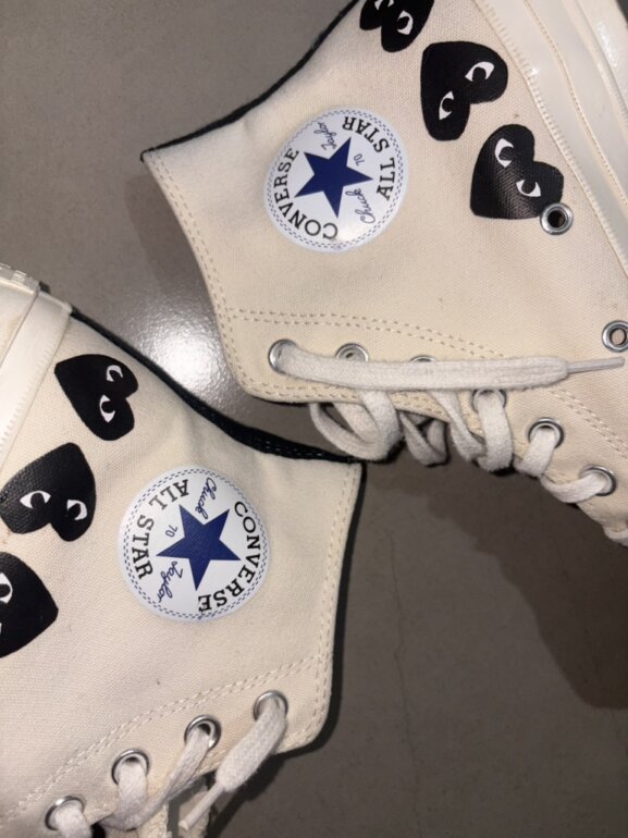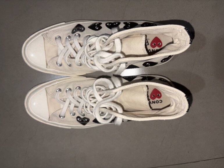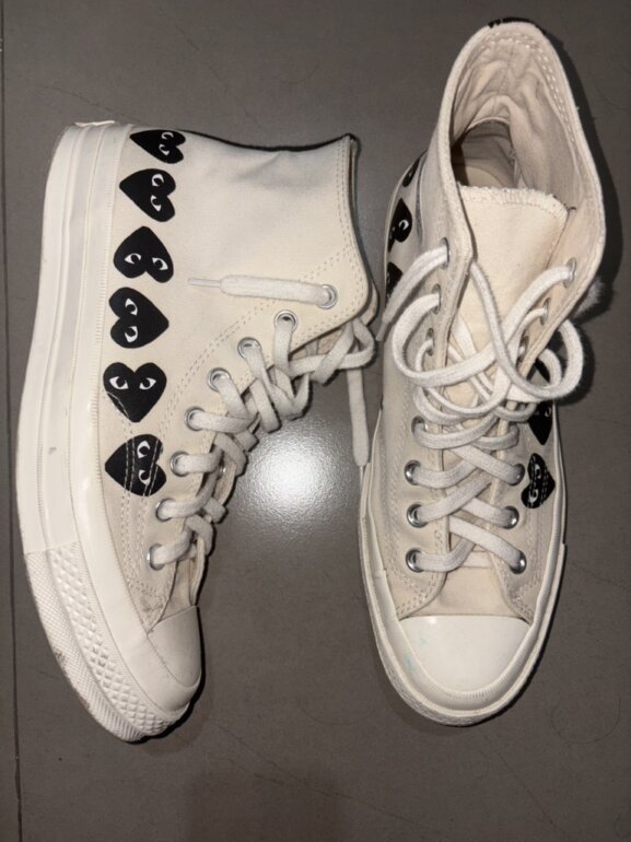 Tenis converse PLAY comme des garçons color blanco con corazones negros. Talla 27cm. En perfectas condiciones (no cuentan con caja)