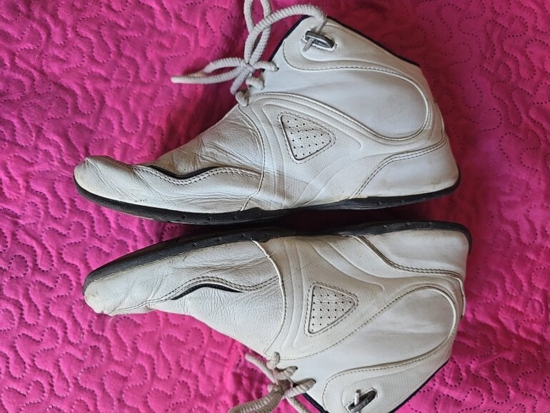 Tenis de basket de uso aun con buena vida ya que son de piel, presentan desgaste normal de uso que se observa en las fotos. Se entregan lavados y desinfectados para seguridad del comprador. La suela aun tiene mucha vida.