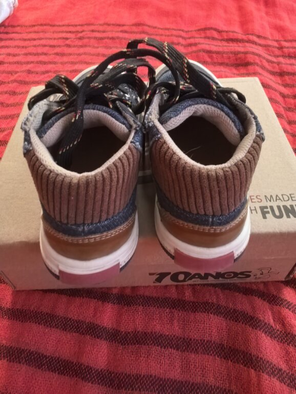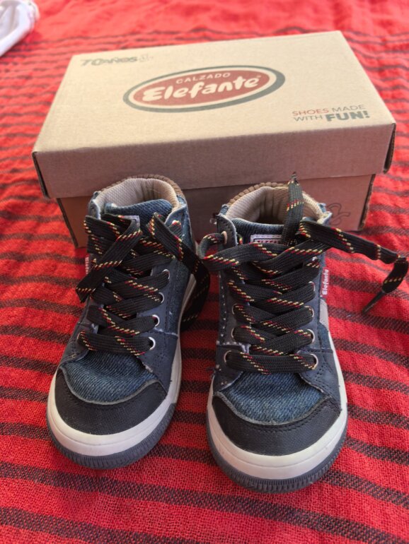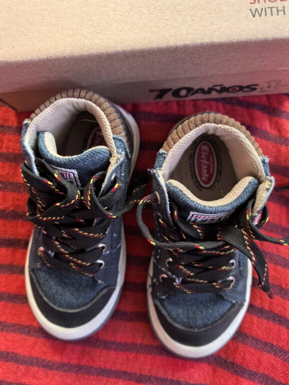 Tenis tipo bota azul mezclilla con café, super suaves y cómodos. Se usaron muy poco. Son talla 15