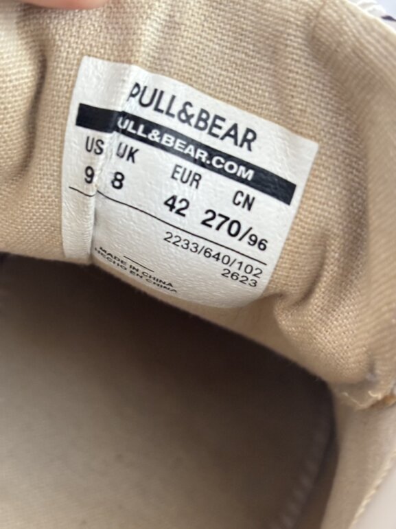 Tenis de pull&bear, tipo graffiti, se usaron muy pocas veces! En talla Eur son 26.5 y en UK viene siendo 9. Puede ser 6.5/7.0