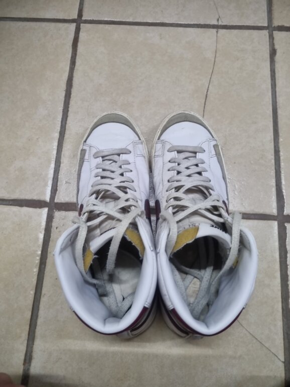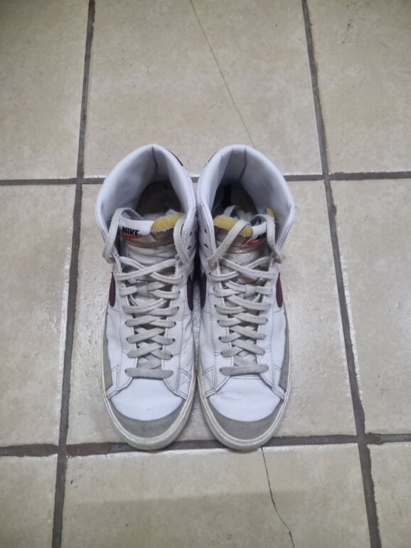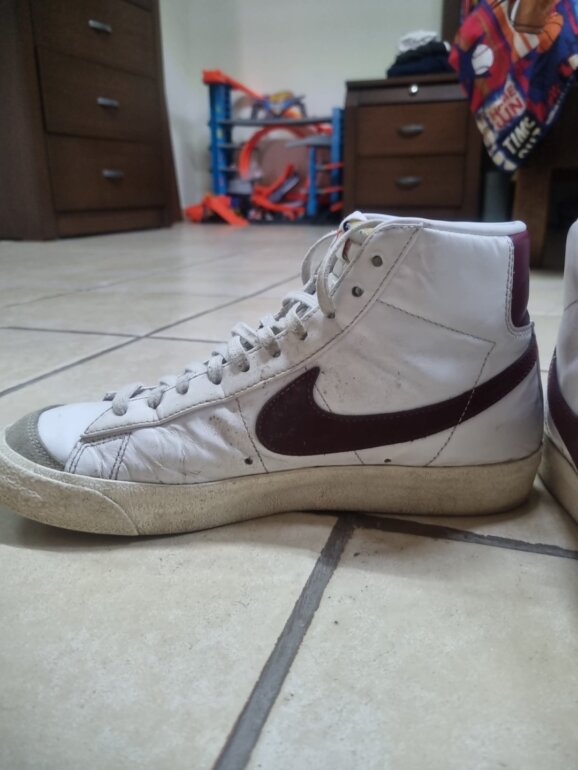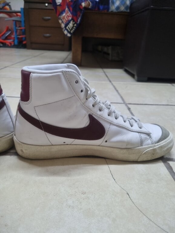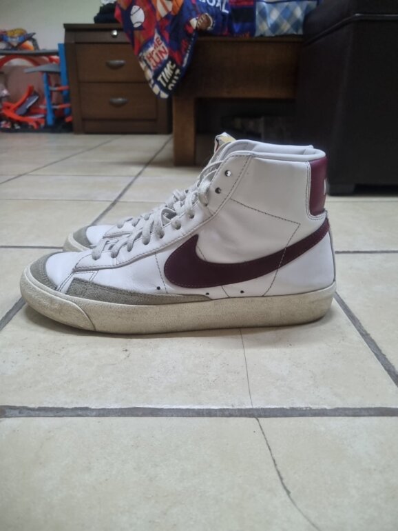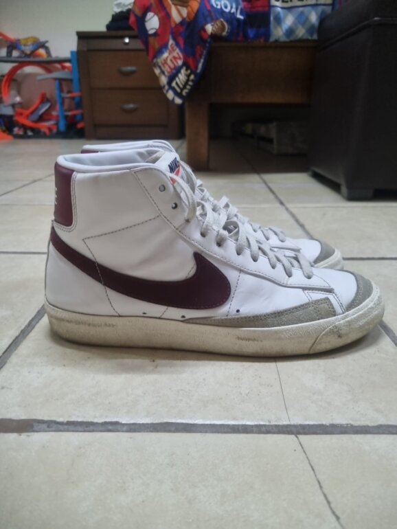 Tenis nike blazer para hombre tipo bota con palomita color tinto talla 26.5cm como se ven en las fotos al 100 nomas estan medios sucios, tienen muy poco uso estan padres