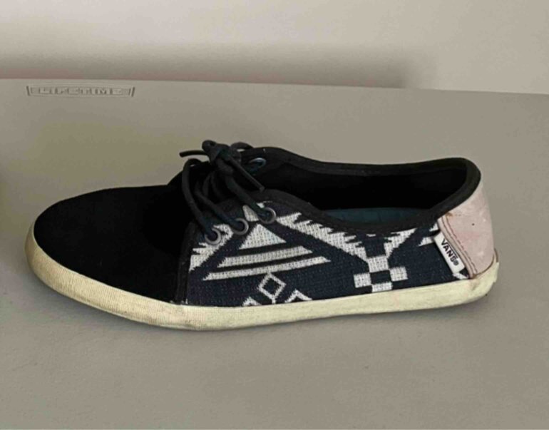 Tenis Vans de agujetas negros con diseño, súper cómodos talla 6 americano.