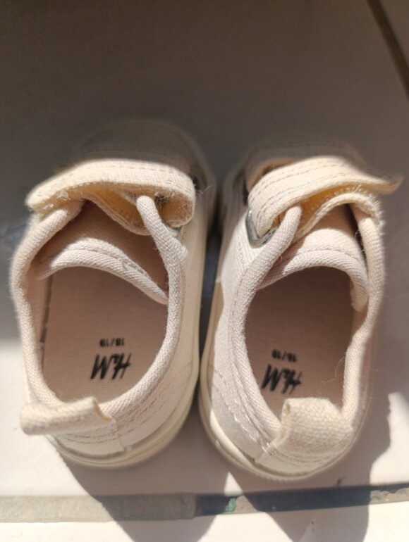 Tenis de fácil ajuste con tiras de velcro coloco las tallas como vienen el zapato talla 18/19 EUR, 4-5 US, sin embargo los medi con mi cinta y tiene 13.5 cm, son color arena super combinable y unisex.