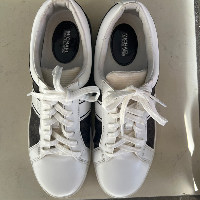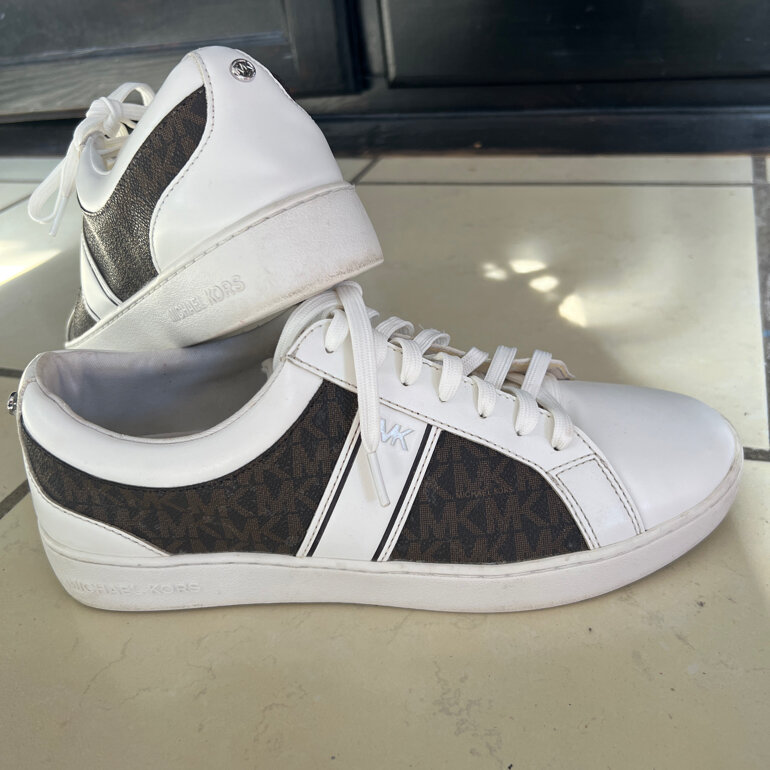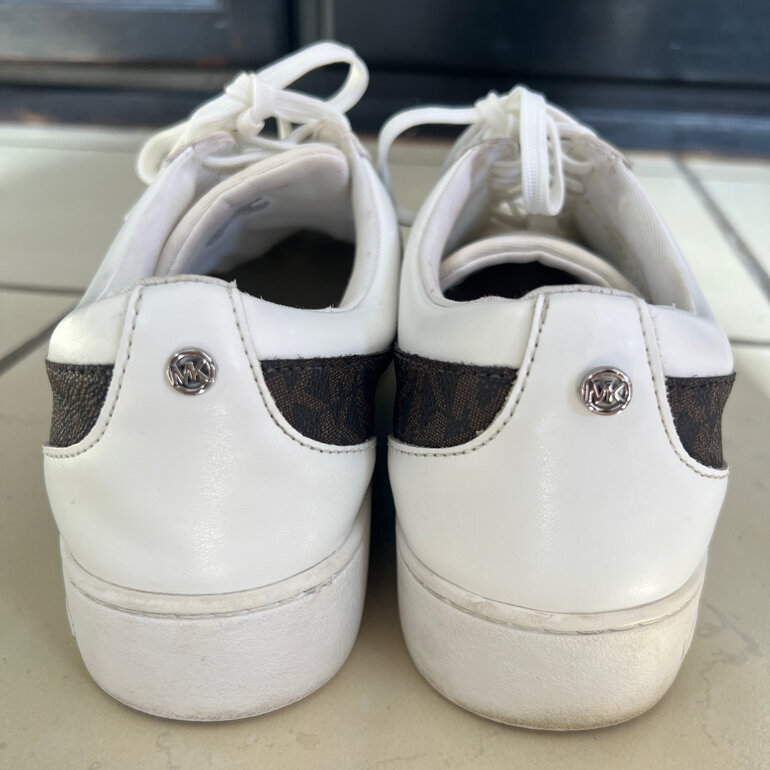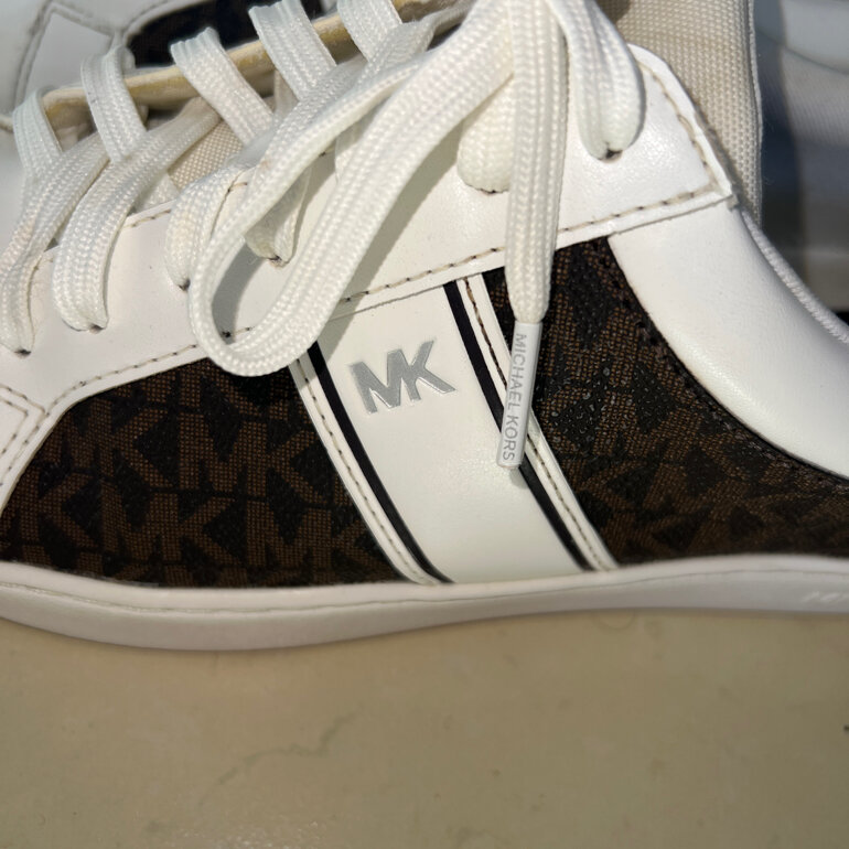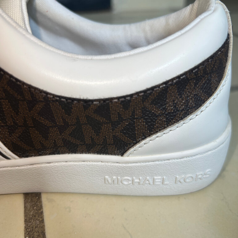 Tenis blancos con café Michael Kors, con ligeros signos de uso pero en muy buenas condiciones!! Combinan con muchas cosas y se ven súper, son 100% originales🤩✨
