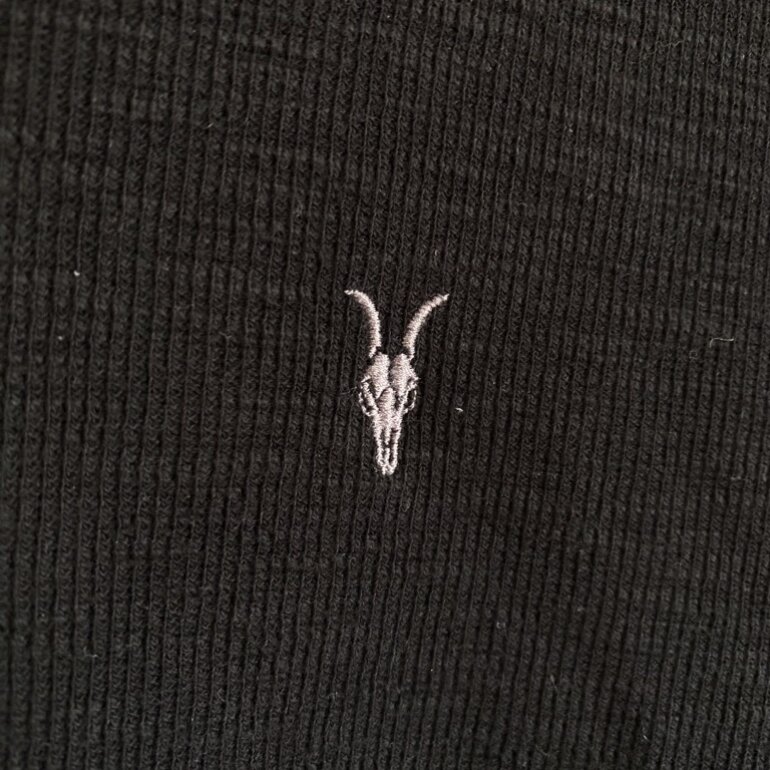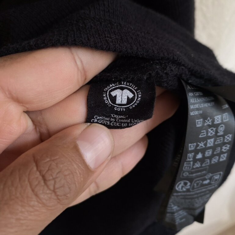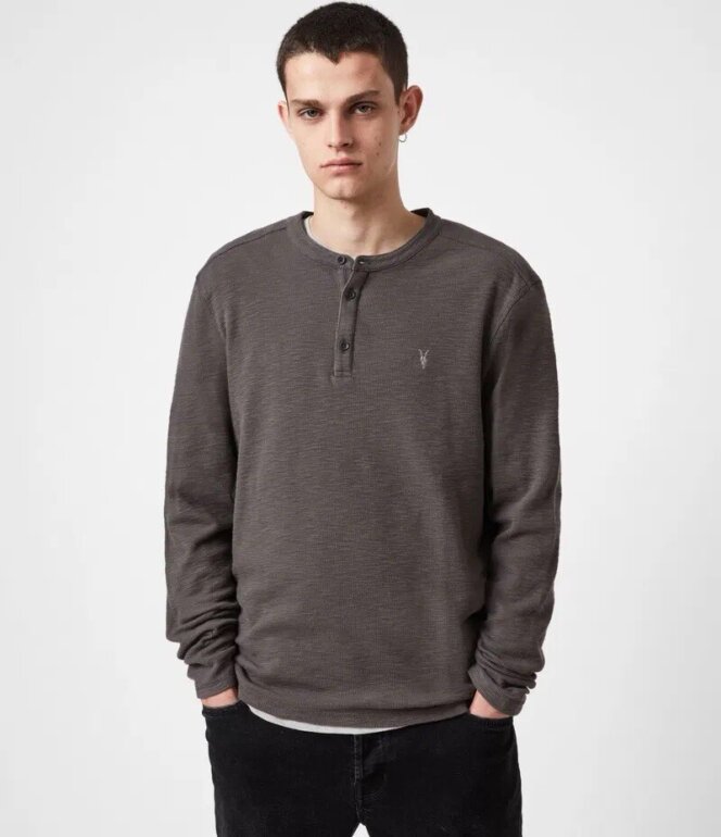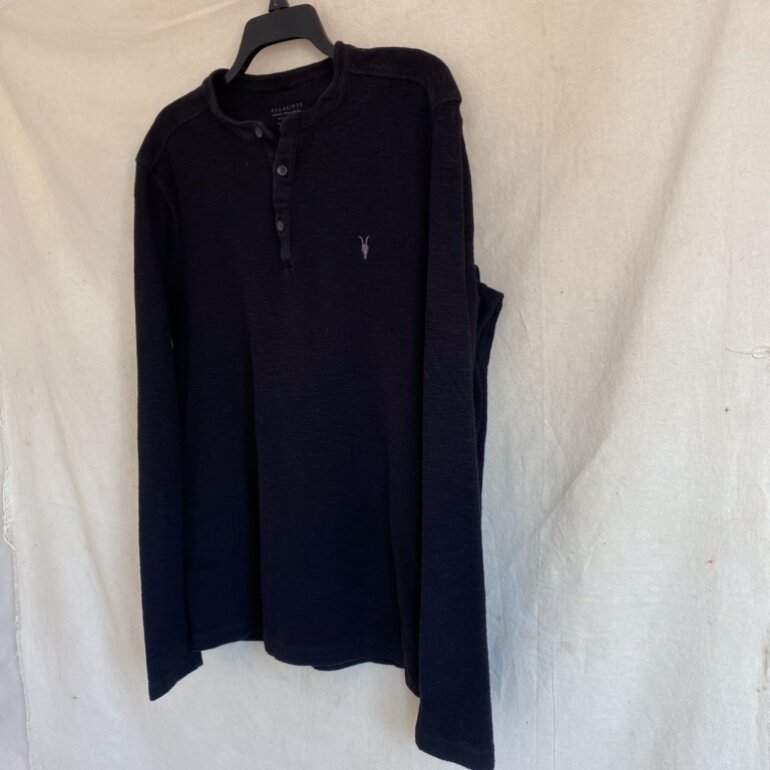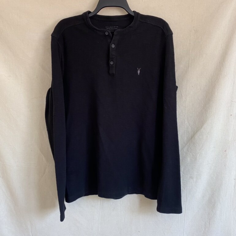 Térmico tipo henley ALL SAINTS, para hombre, talla M. Combinación dde algodón y elastano color negro. Original, no presenta detalles.
