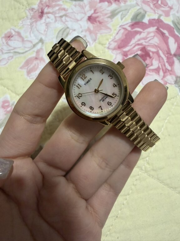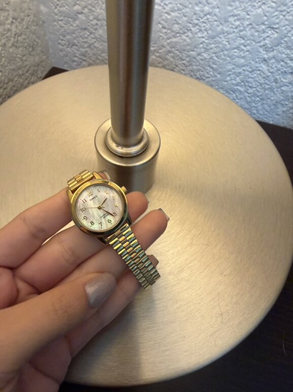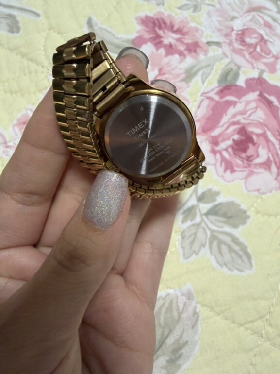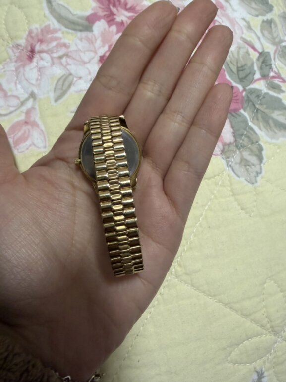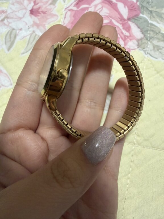 HOLA! ESTE RELOJ ESTÁ BELLÍSIMO, LO MADE A AJUSTAR PERO AÚN TENGO LOS ESLABONES QUE LE RETIRARON, NO TIENE DETALLES <3