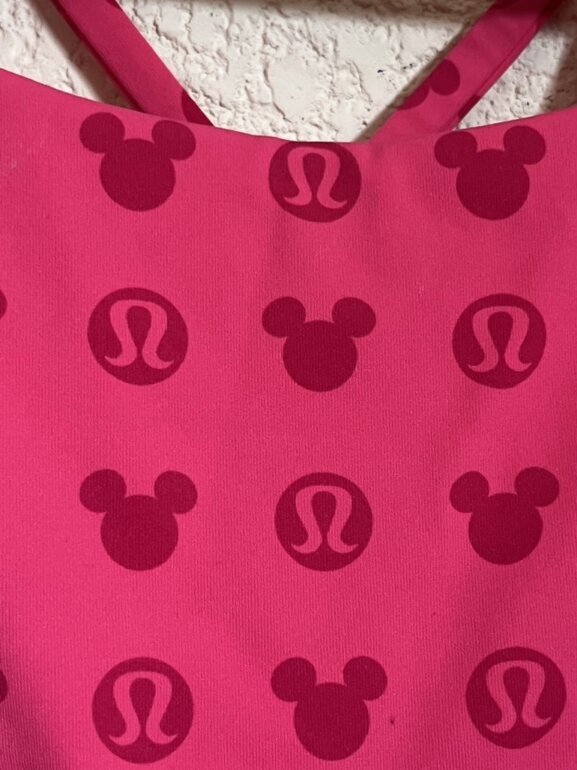 Hermoso top deportivo ✨Lululemon✨en color rosa de la colección de Disney y con detalle de la misma en talla XS.
