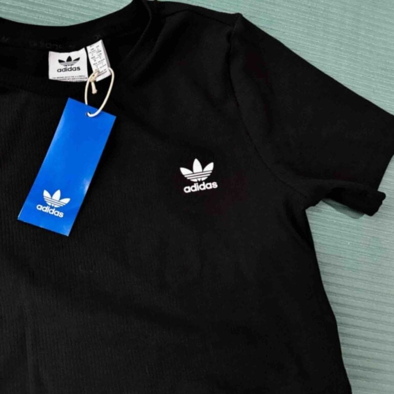 Playera corta acanalada • línea causal de Adidas (orginals) • es talla L de junior equivale a XS e incluso S de dama ya que a mí me quedó grande para mi gusto • tela suave y stretch • básico ideal para todo