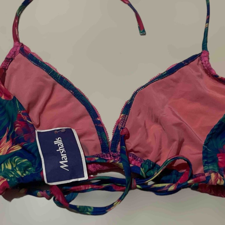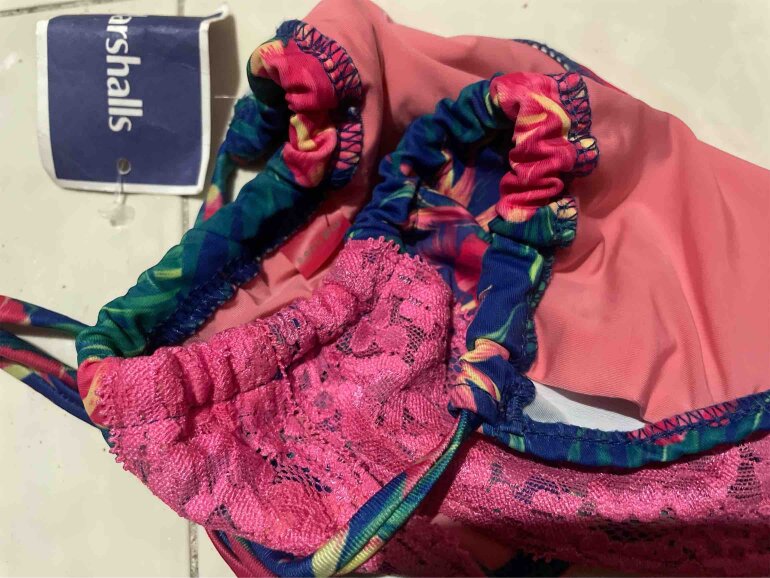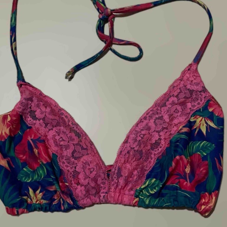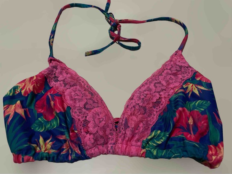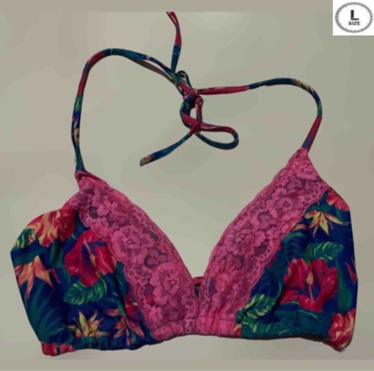 Top de bikini floreado con encaje rosa , talla L nuevo con etiqueta ( etiqueta del lugar donde se compró, no de la marca )