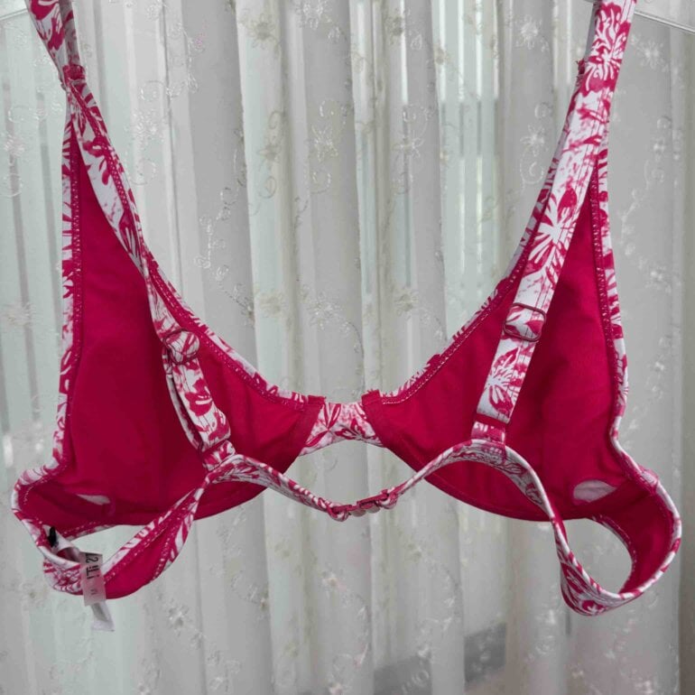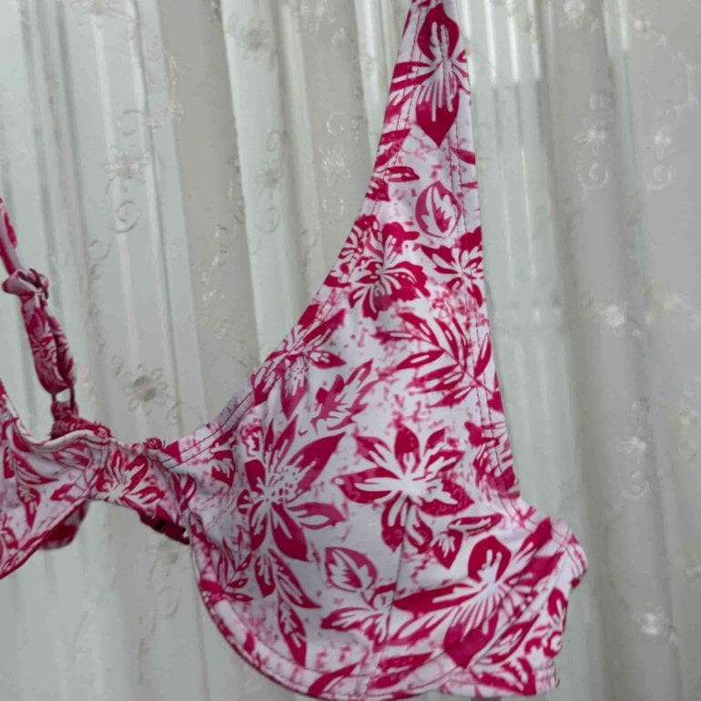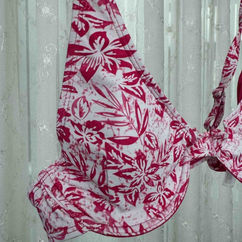 Top traje de baño floreado, flores rosas