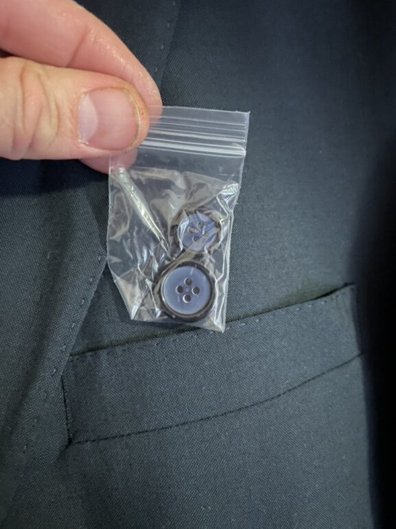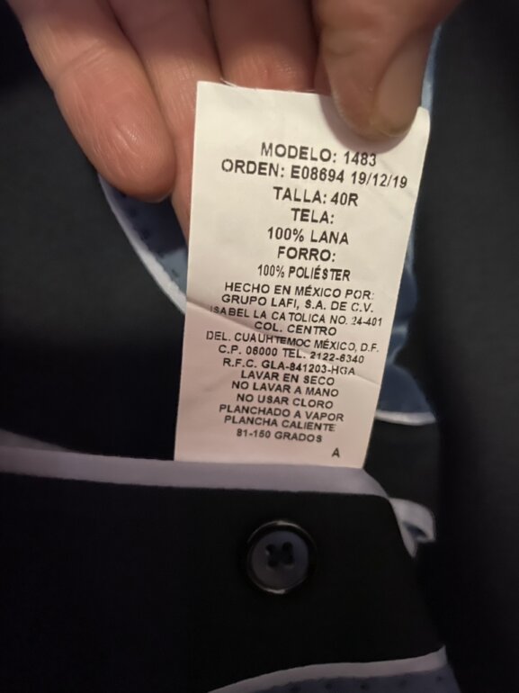 Traje azul marino liso completamente nuevo sin usar. Saco talla 40R pantalón cintura 34 sin dobladillo. Cuanta con botones de repuesto