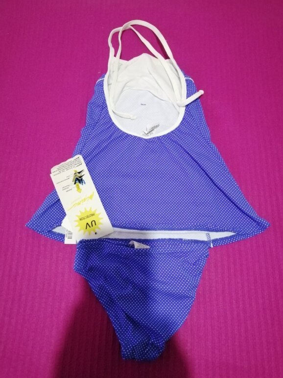 !!!! NO ACEPTO OFERTAS !!!!! Traje de bañopara niña #6, 2 piezas en color azúl con multi-puntitos blancos, tirantes cruzados.