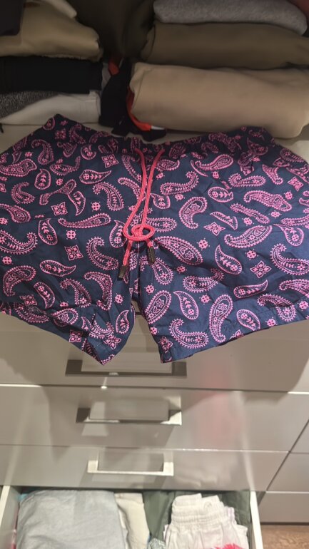 Traje de baño azul marino con rosa