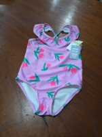 Hermoso traje de baño para niña, con tirantes cruzados en la parte trasera, olanes en la parte del cuello y hermoso estampado en tulipanes