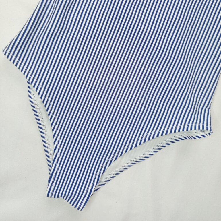 Traje de baño completo para niña, con escote en la espalda. La tela estira mucho y está en excelentes condiciones. No tiene etiqueta (se cortó).
