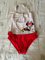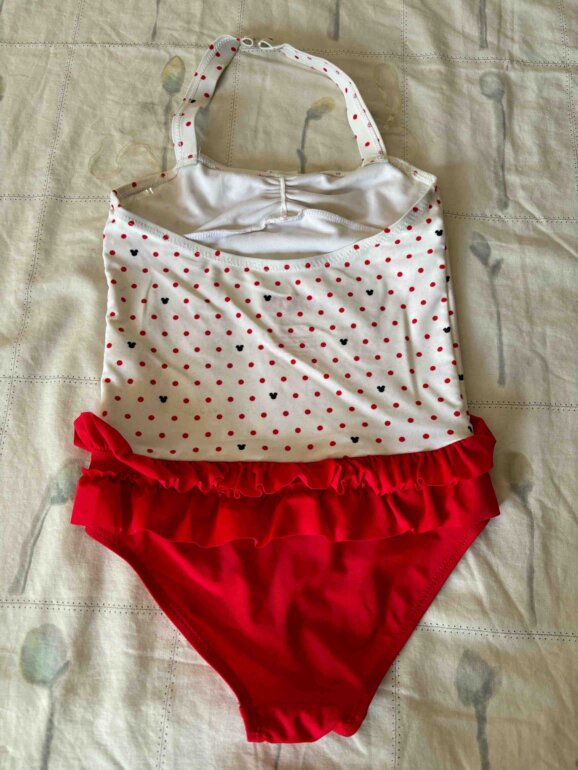 Lindo traje de baño rojo con blanco Mimi escarolas a los lados sin detalles talla 5 marca Disney