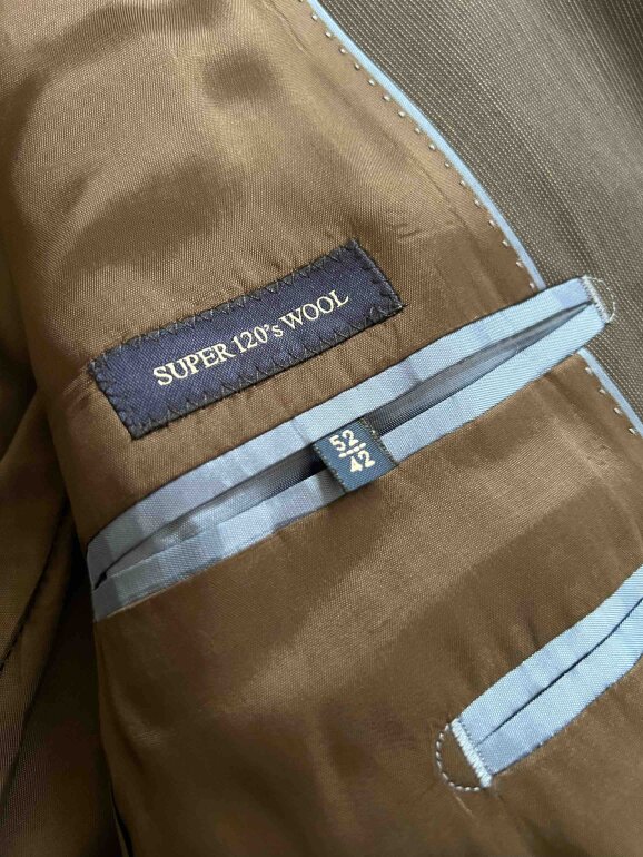 Traje (pantalón y saco) de lana en color café, marca Massimo Dutti, talla 52EU