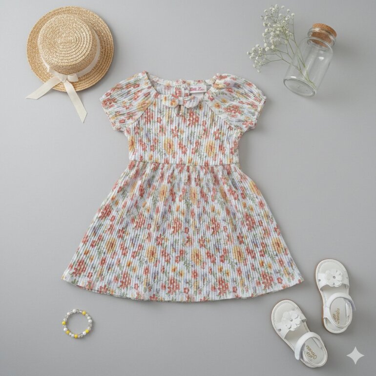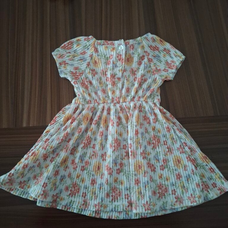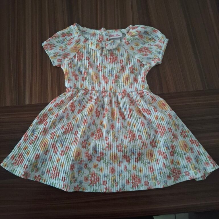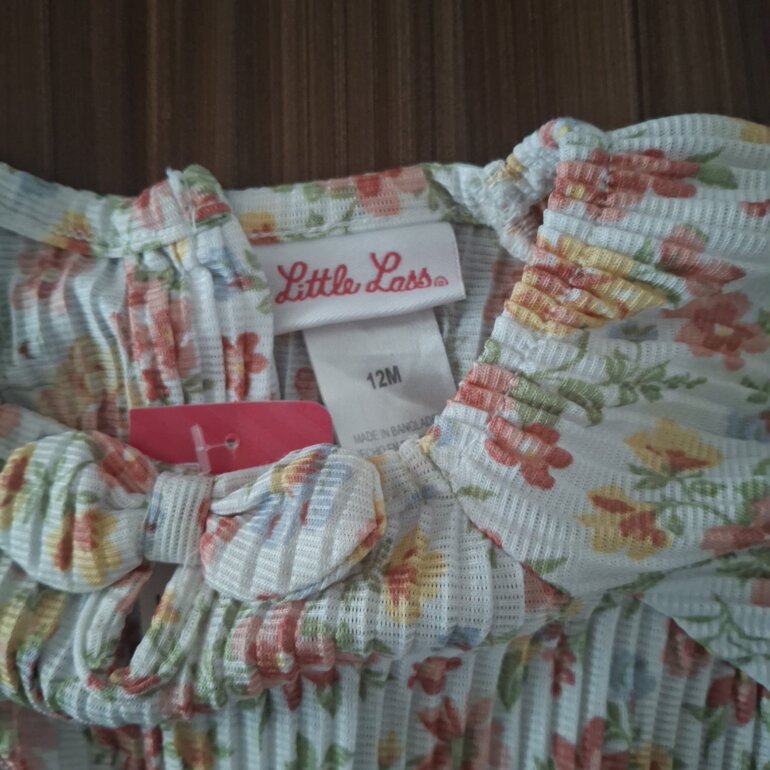 Lindo vestido con diseño de flores fresco para niñña de 12 meces marca Litle Lass.