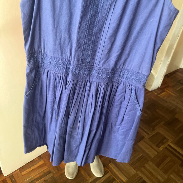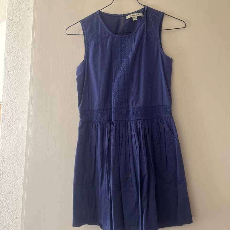 Vestido niña azul rey con detalles bordados, Massimo Dutti, sin mangas, 100 % algodón