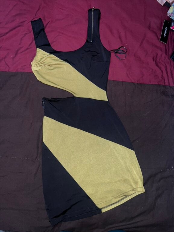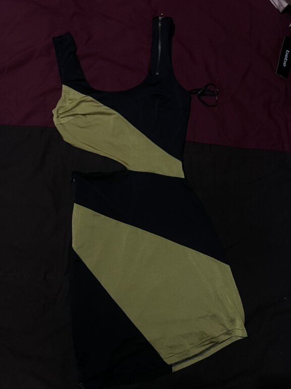 Bonito vestido marca bebe tela fina vi. Cierre a lado de la parte de la pierna . Estrech y horma porque es licra apretadita