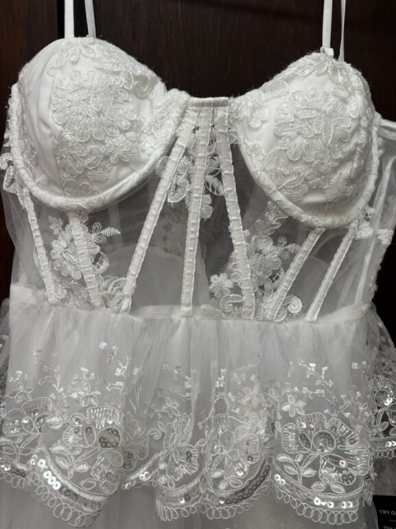 Hola! Si tienes cualquier duda acerca de mi Vestido blanco corto con encaje y corset puedes escribirme aquí!