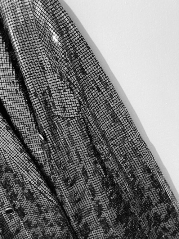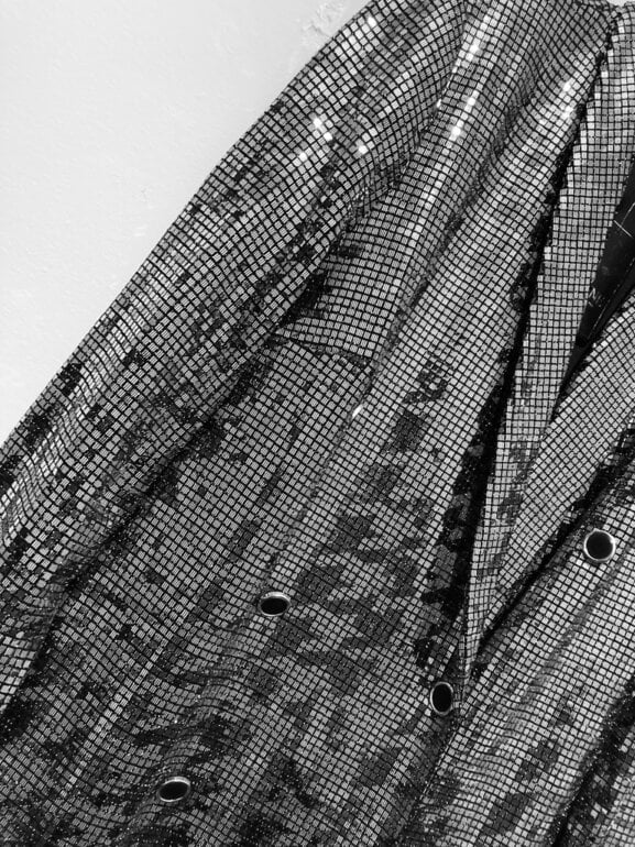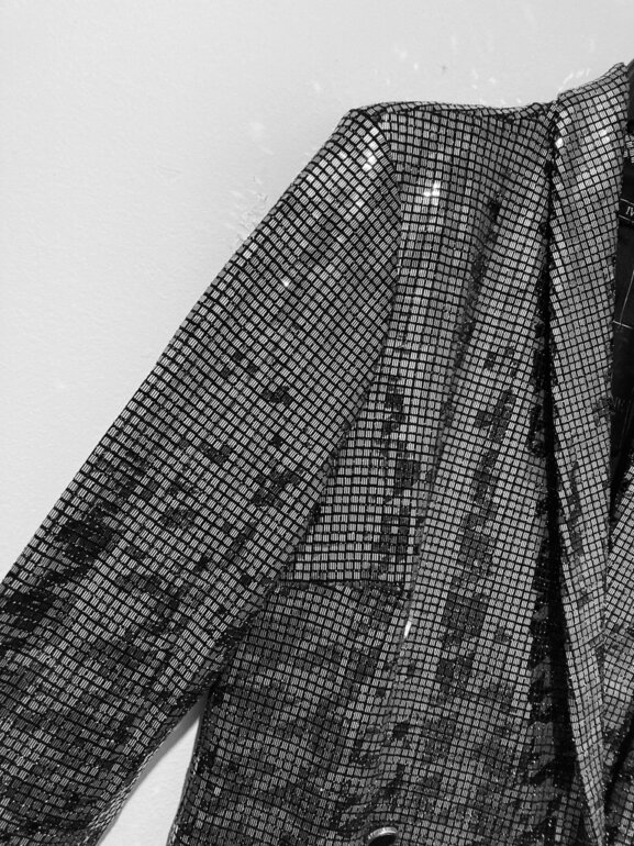 Divino vestido tipo blazer plata de lentejuelas con diseño hounsdstooth súper lindo