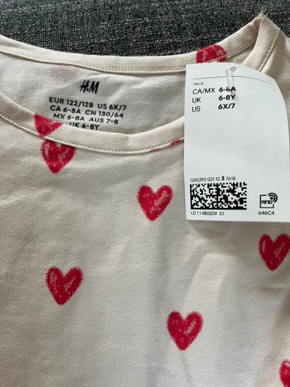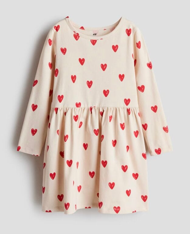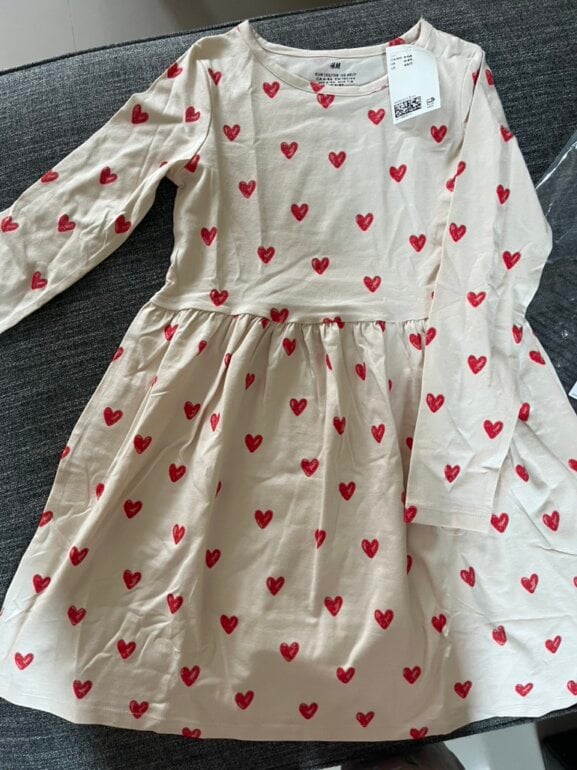 Vestido de corazones para niña , de manga larga. La tela se fresca y muy comida. Talla 6 - 7 años.