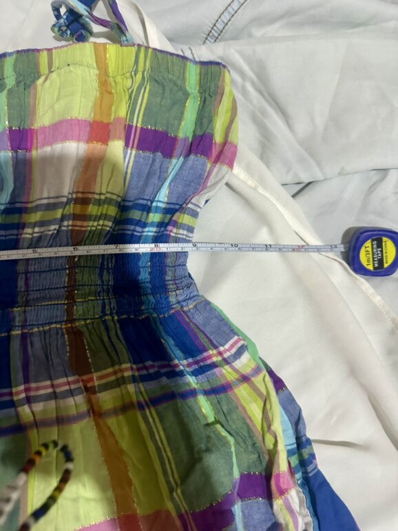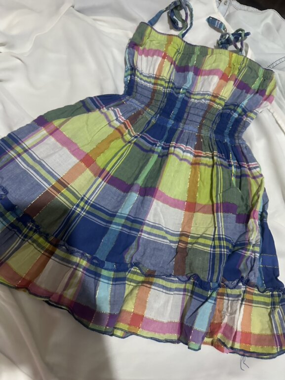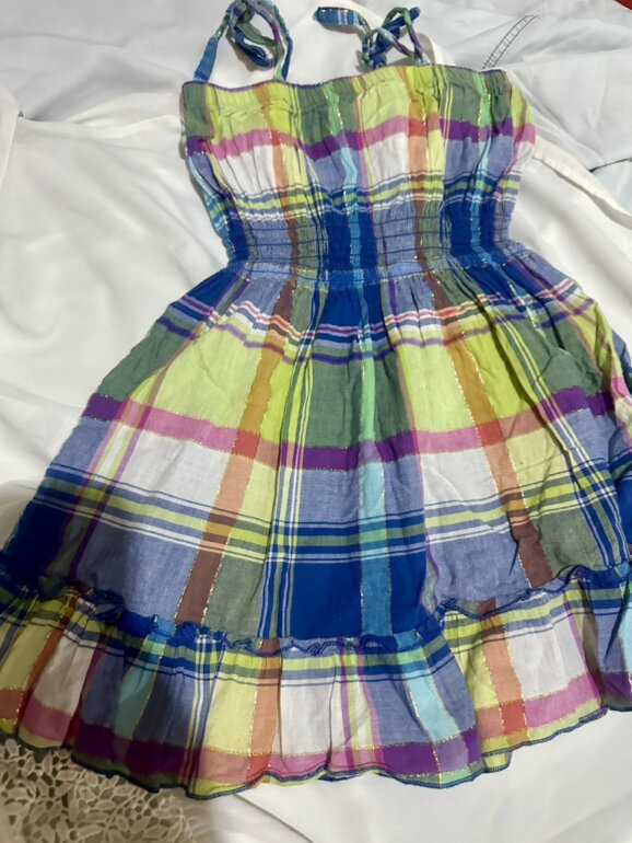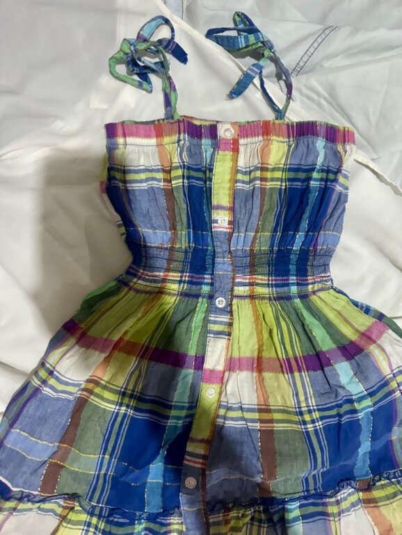 Este es un vestido de algodón madras de patchwork / Cuadrado