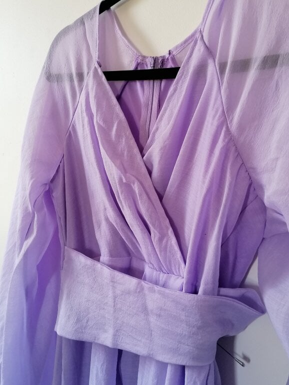 Nuevo, vestido de cuello cruzado color lila púrpura talla M, manga de campana
